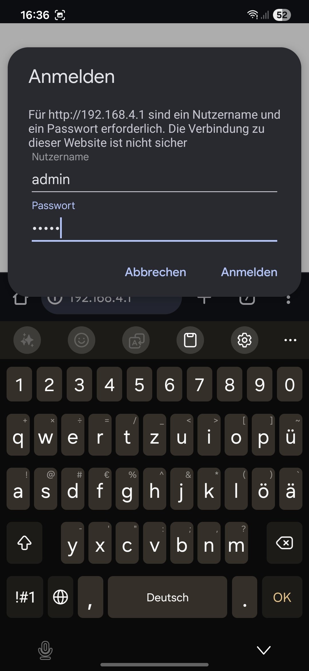 - eine eventuelle Warnung bestätigen Sie bitte (andernfalls ist eine Konfiguration nicht möglich)